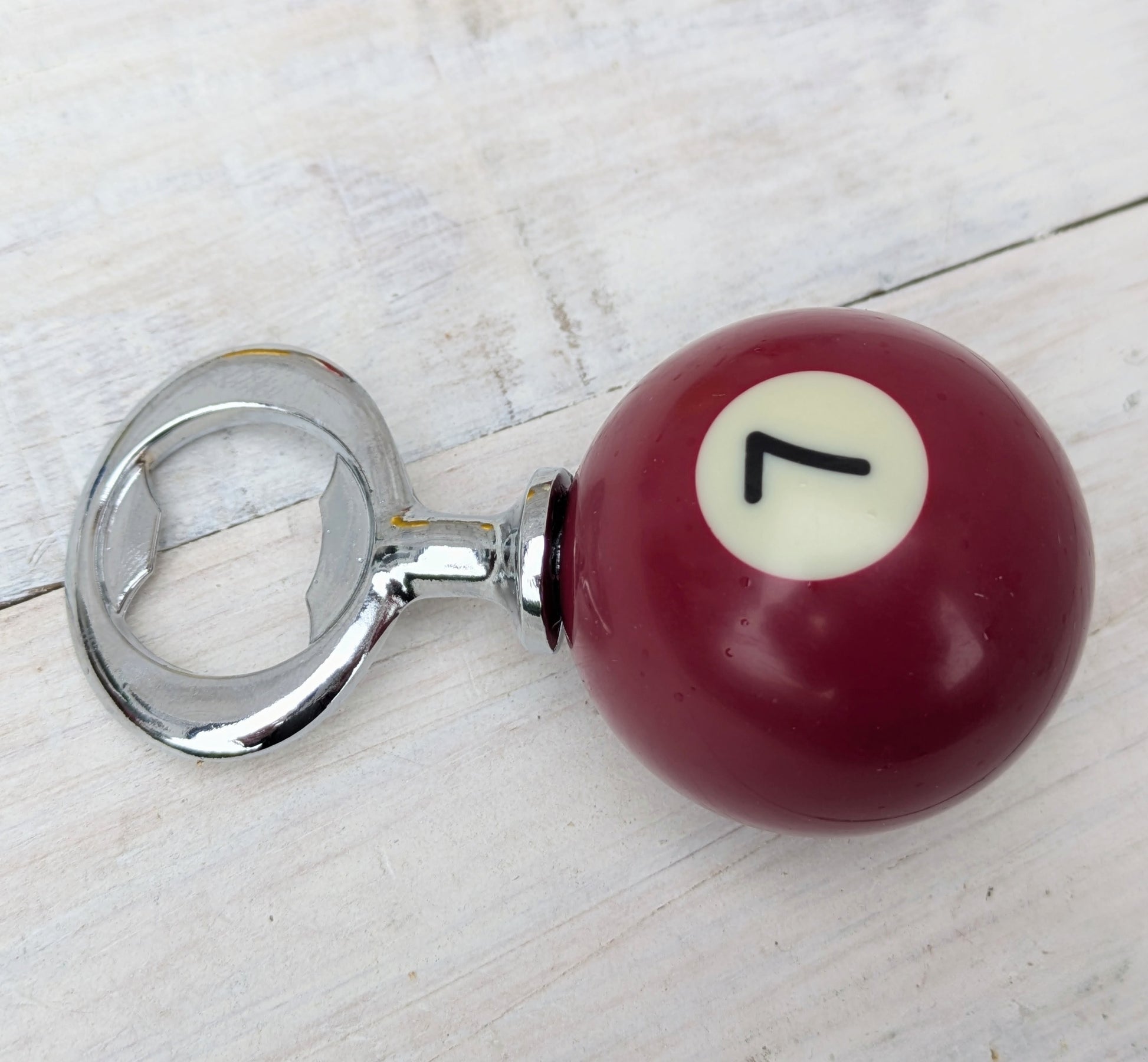 100% HANDCRAFTED Repurposed Pool Ball Bottle Opener. The balls have been drilled, threaded and metal opener screwed and cemented in. Striking, colourful, Strong & Sturdy.